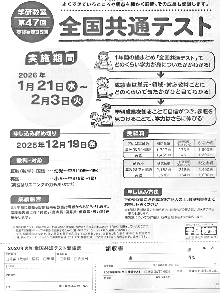 先生方、本当にありがとうございます。中学生になっても、もっと学研でがんばっていきます。